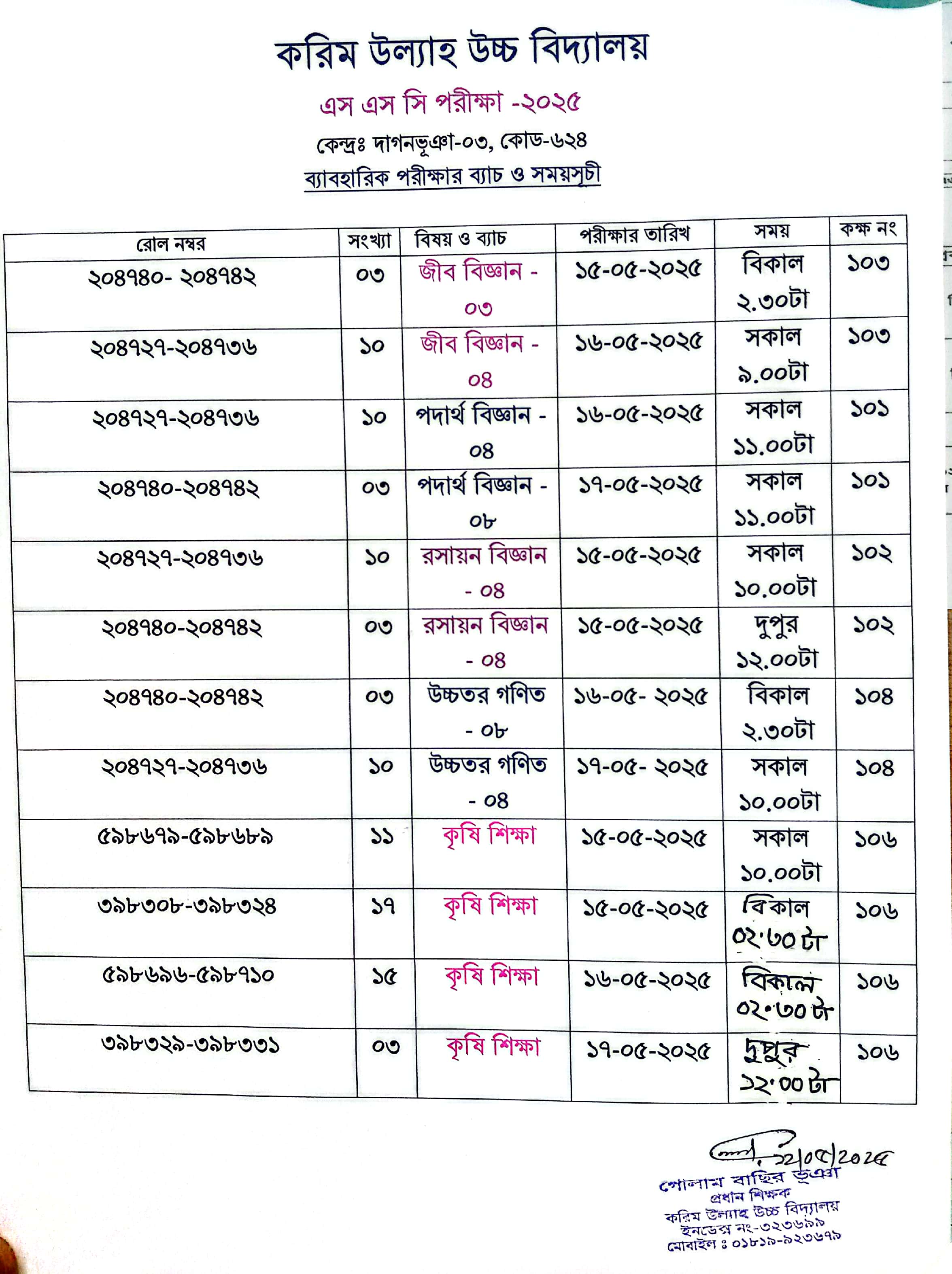 এস এস সি পরিক্ষা ২০২৫ খ্রি. এর ব্যবহারিক পরীক্ষার সময়সূচী। |