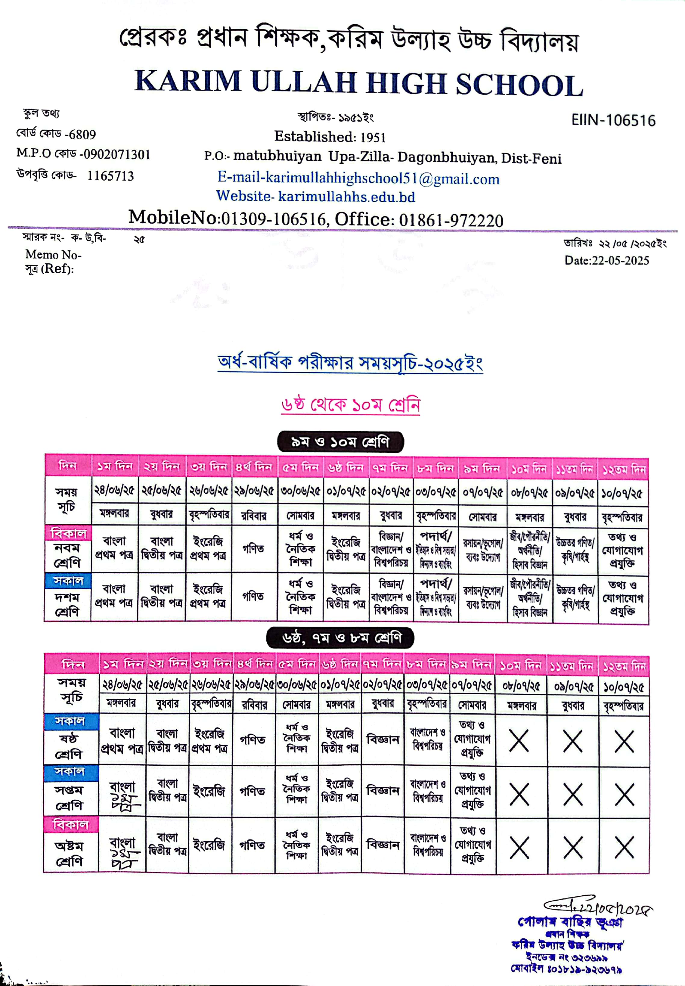 অর্ধ-বার্ষিক পরিক্ষার সময়সূচি -২০২৫ ইং |