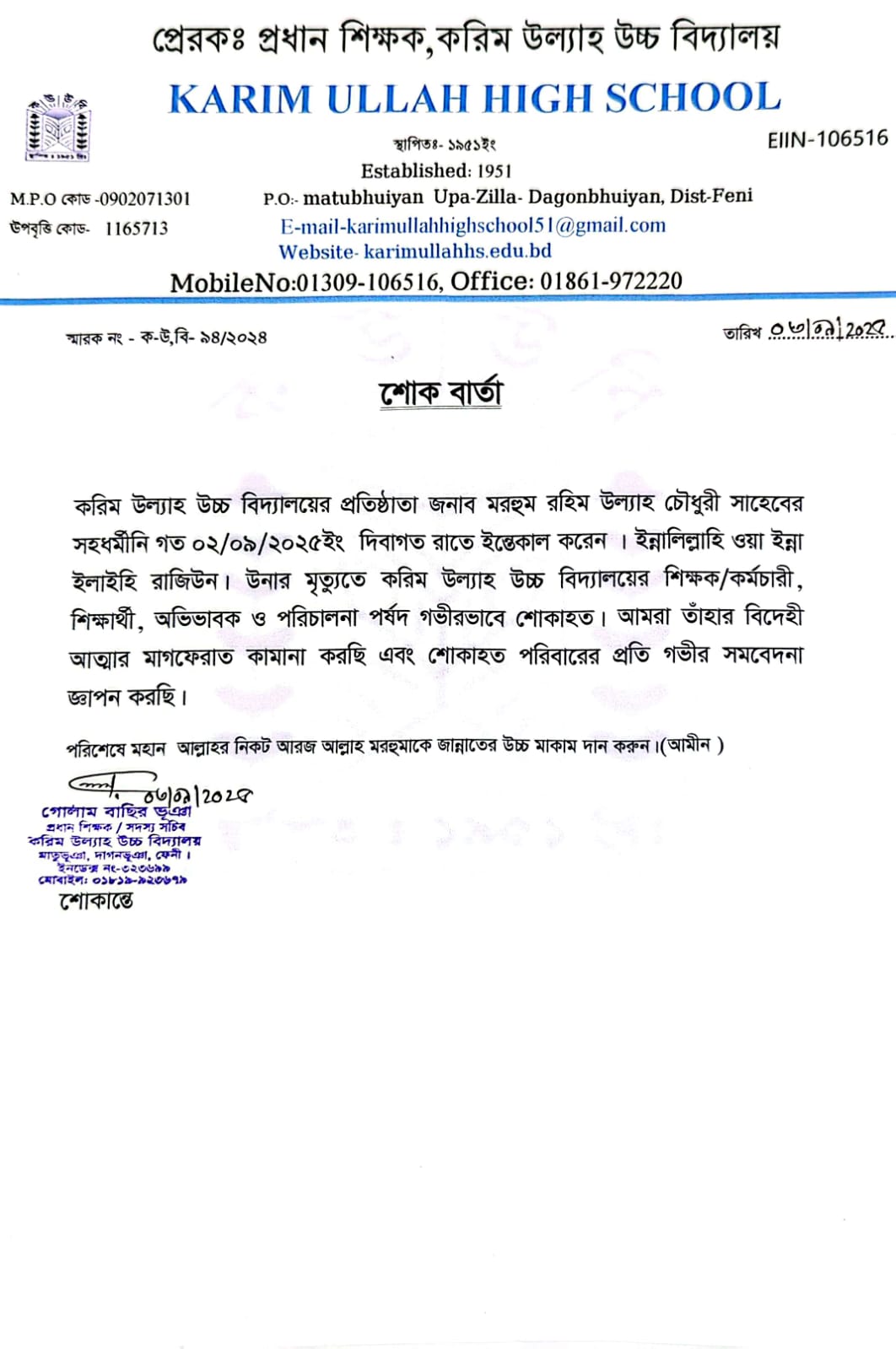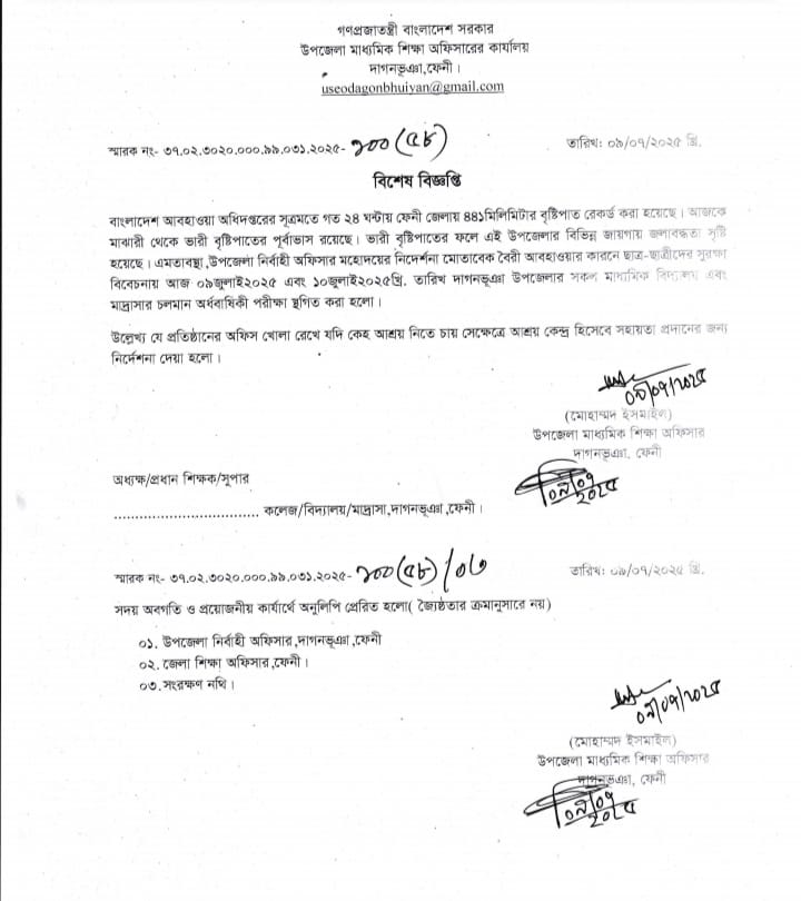 UNO স্যারের নির্দেশে ১০/০৭/২০২৫ইং পর্যন্ত পরিক্ষা ও সকল শ্রেনি কার্যক্রম স্থগিত করা হল। |