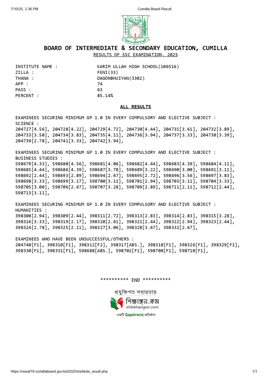এস এস সি পরিক্ষা-২০২৫ এর ফলাফল। |